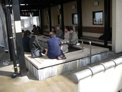 再來到了島原市的錦鋰湧水街街,島原市是個有豐富湧泉的小城鎮,在停車場旁就有一個讓市民做足浴的公共池,有許多阿公、阿桑正舒服的泡著腳呢。