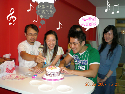 大家非常合作的以快版速度唱完生日快樂歌後,就以迅雷不掩耳的速度瓜分了蛋糕