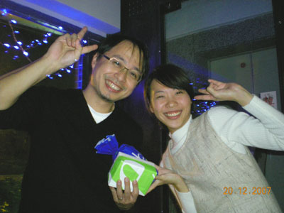在此之前我和馥霞去吃飯時,馥霞說她覺得如果抽到阿酷最苦惱,因為他這個人太刁鑽了,實在不知道要送什麼給他,感覺他拆禮物的時候一定會從鼻孔冒出『ㄘ ㄘㄘ』的聲音 (((不過,當時我雖然開心的附和馥霞,但其實心裡在滴淚,因為抽到阿酷的人就是我啦!!!!))),另外最不想被誰抽到,當然就是dolly啦,因為dolly的媽媽一再保證dolly的禮物會由dolly