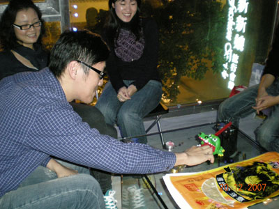 *飯店對面的電動玩具店,丁文好運的用¥100夾到一個機器人